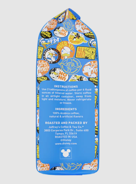 But we’re not here to talk about our old favorites. Instead, we want to show off the NEW Donald Duck 90th Anniversary Blend, which is available online now! Before we talk flavor, we have to say that even the bag itself is FUN and colorful.