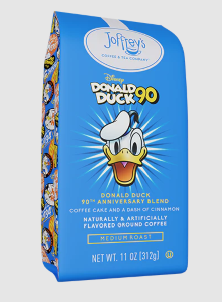 OK, so this is a medium roast blend of specialty coffee with flavors of coffee cake and cinnamon. The blend was designed to celebrate Donald Duck’s impressive anniversary — check out all the fun details on the bag.