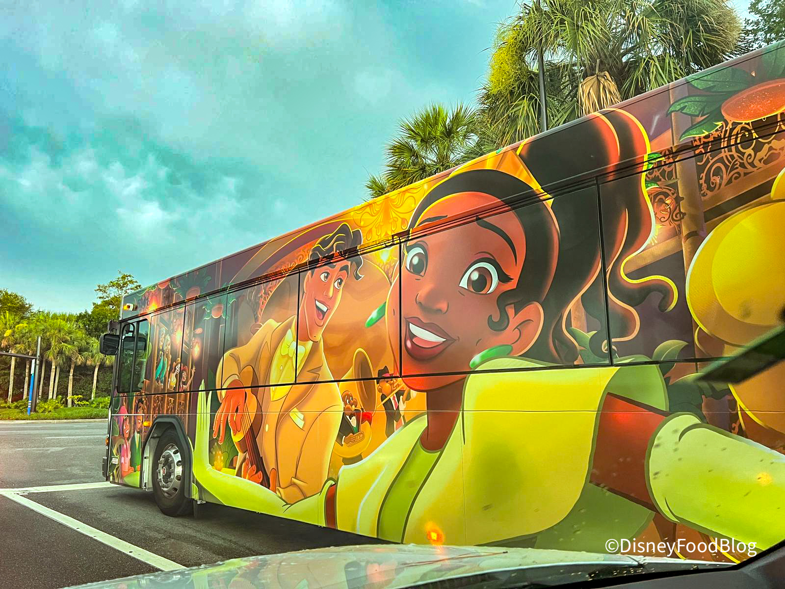 The debut of this new bus wrap comes at the perfect time as Tiana’s Bayou Adventure is opening in Magic Kingdom soon! The ride has already started having Cast Member, DVC, and Annual Passholder previews, but the ride officially opens on June 28th, 2024. It is so much fun seeing this cast of characters traveling down the Disney World roads.