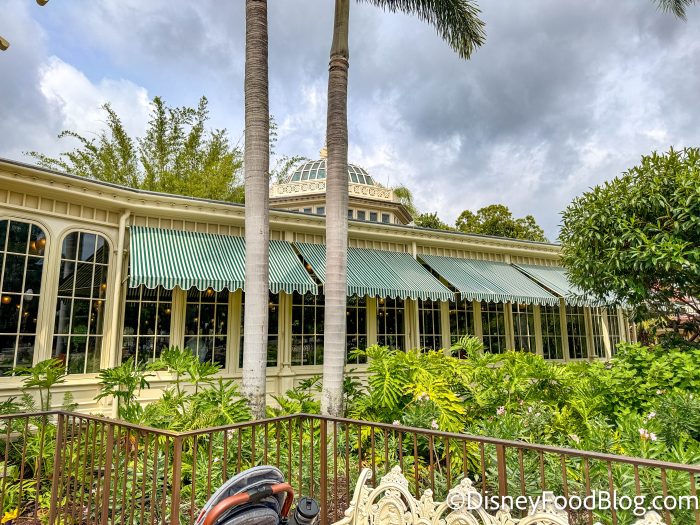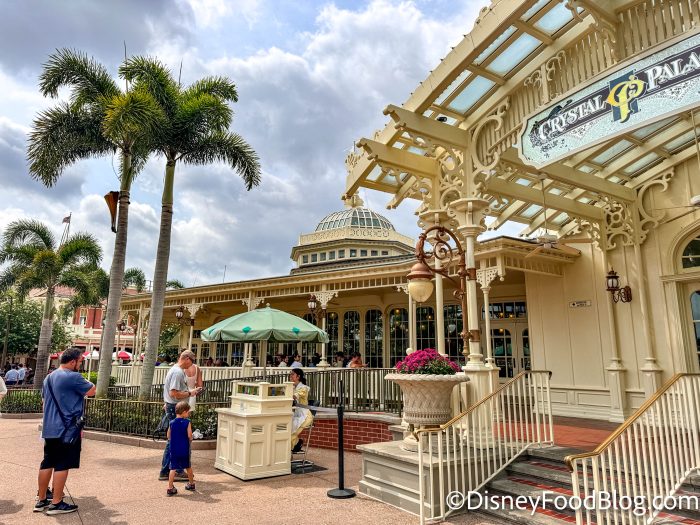 Crystal Palace is located on the corner of Main Street, U.S.A., and Adventureland in Magic Kingdom, and you can see the influences from both lands in its exterior architecture. On the left side, the decor is influenced by the turn of the century styles…