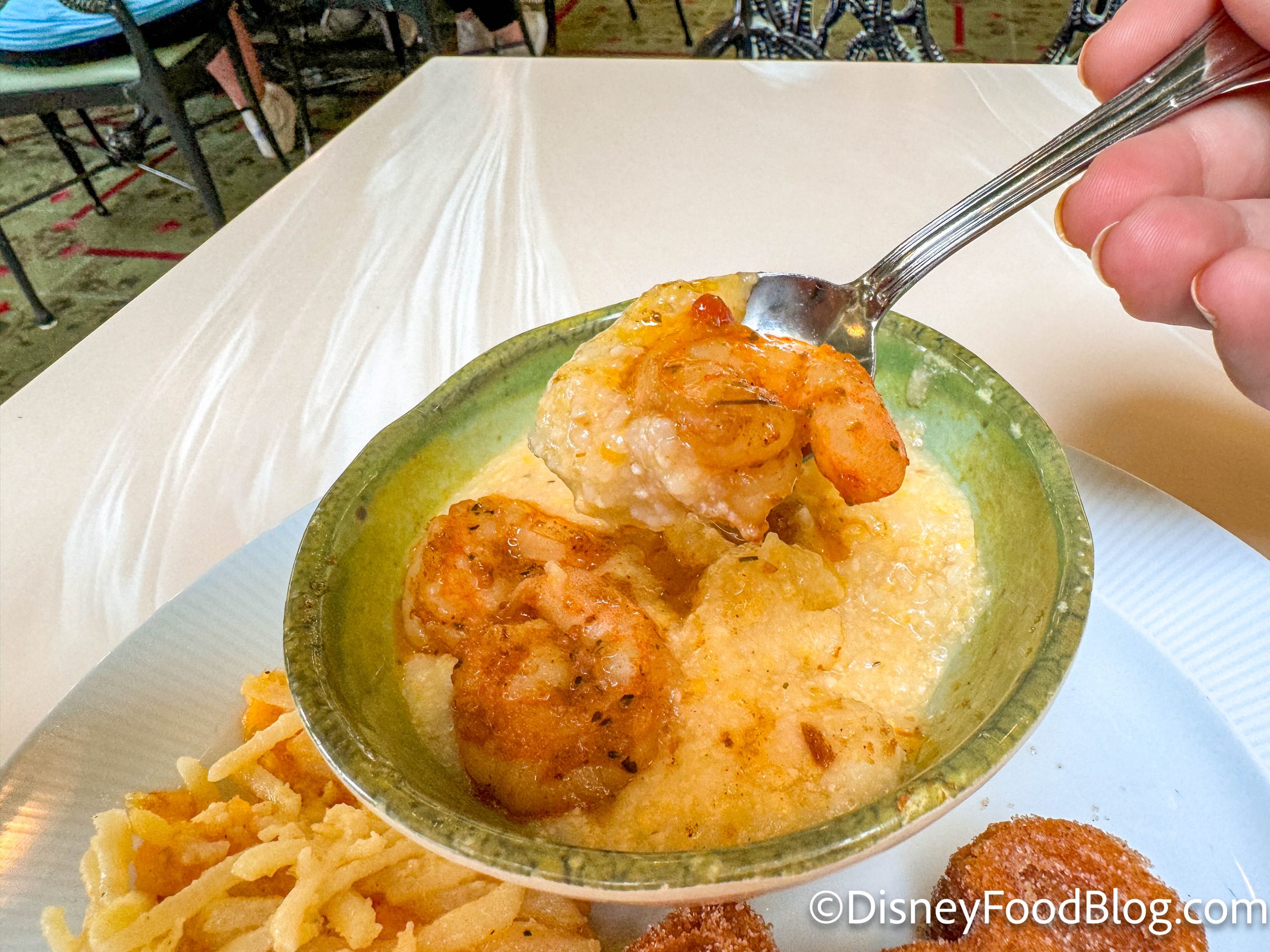 To round out my breakfast eats, I made a bowl of shrimp and grits. The grits were fairly gritty and needed a little more butter, but were mildly cheesy. The shrimp had a nice kick to them, but this definitely wasn’t the best shrimp and grits I’ve had in Disney World.