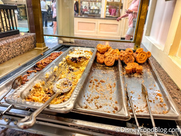 Kicking off things with the breakfast buffet, we have the dessert area, which is home to those iconic churro Mickey waffles.