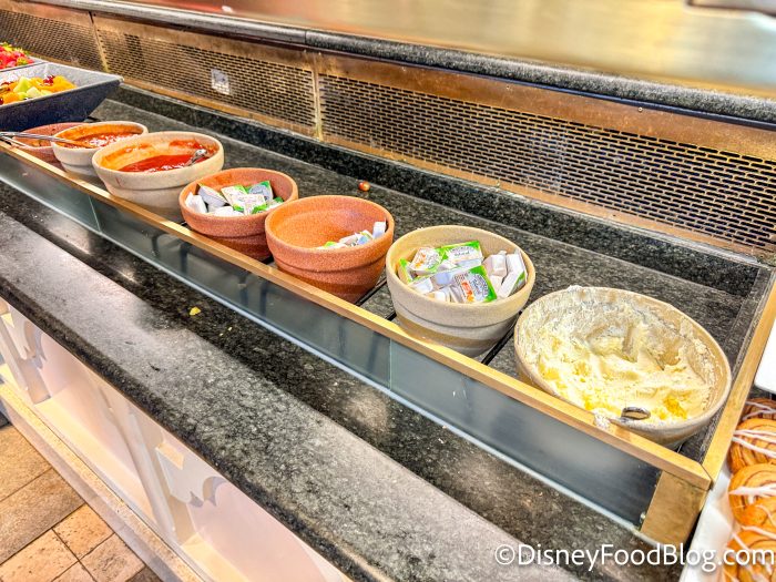 …with plenty of jams, butters, and sauces to choose from.