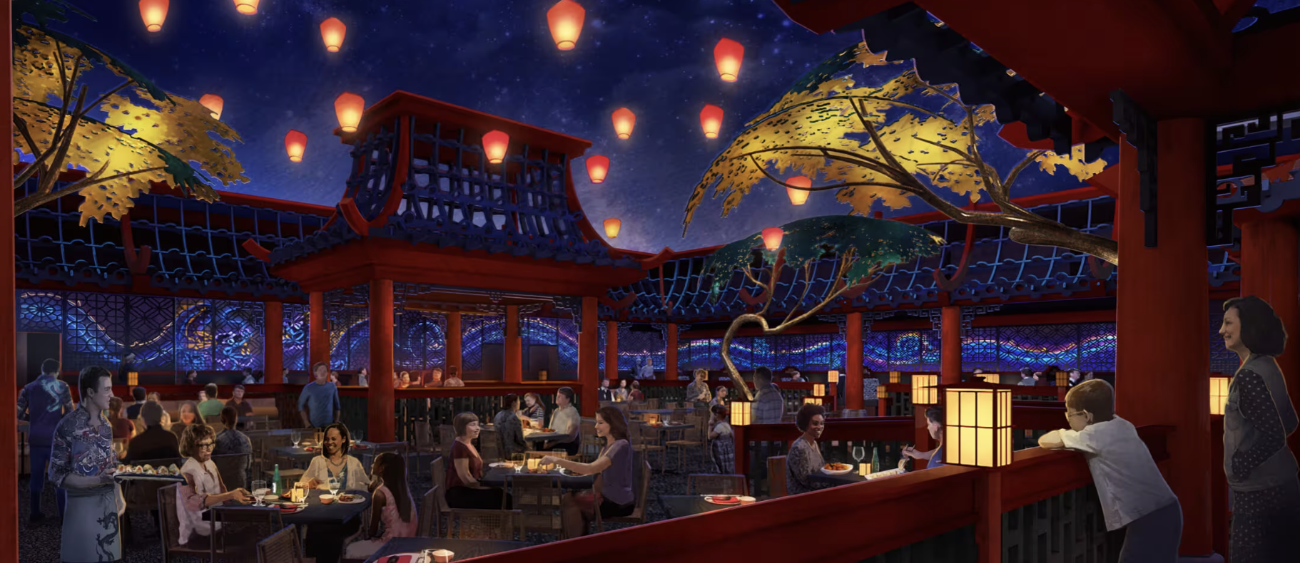 Celestial Park is the land at the entrance of Epic Universe — kind of “the hub” of the park. Restaurants in Celestial Park will include a full-service “surf and turf” restaurant called Atlantic. The Blue Dragon Pan-Asian Restaurant will present flavors of Asia with authentic Chinese, Japanese, and Thai meals in a full-service fashion.