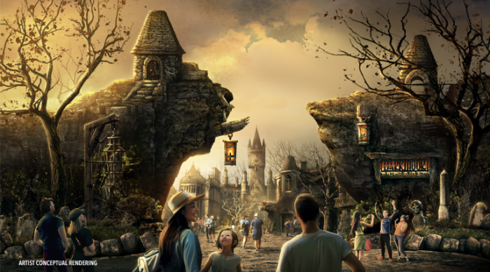 The Burning Blade Tavern will allow diners to eat in an “old mill which Darkmoor Village’s monster hunters have transformed into their hangout.” Instead of the monsters being portrayed as heroes like Das Stakehaus, this restaurant is more about the hunters who protect regular folk from these legendary beasts. Surrounded by trophy heads of conquered monsters, diners will be able to enjoy a menu of burgers, pretzels, wings, bratwurst, and specialty beverages while they listen to tales of victory from the hunters. Additionally, Universal teased that this tavern will erupt into flames several times an hour. To accomplish this, Universal will use two types of fuel to create different types of visibility during the day and evening.