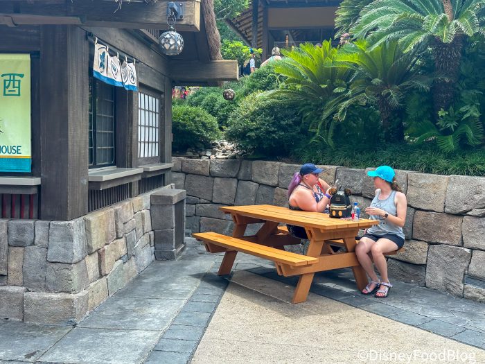 …and you might find a few standing tables outside of the nearby store, Mitsukoshi. Otherwise, your other option is to take your drink with you as you continue to work your way around EPCOT!