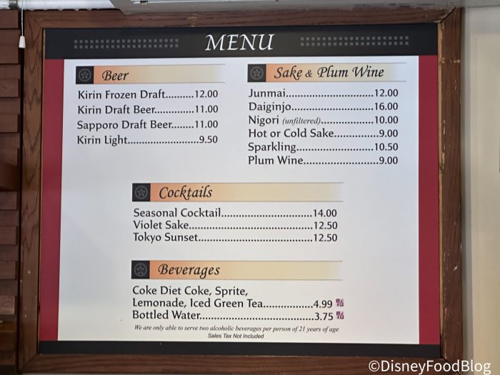 This is a unique restaurant that’s really almost more of a glorified beverage stand. While it’s a permanent fixture in the Japan Pavilion found around EPCOT’s World Showcase, it’s very open-concept.