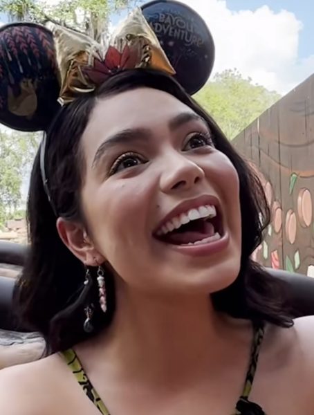 Recently, Auliʻi Cravalho got the chance to ride Tiana’s Bayou Adventure! You may recognize that name as the voice of Moana in Disney’s popular animated film. Miss Cravalho came READY to ride Tiana’s Bayou Adventure; she’s even wearing a pair of exclusive new Minnie ears! As you can see, she started with a big smile on her face.