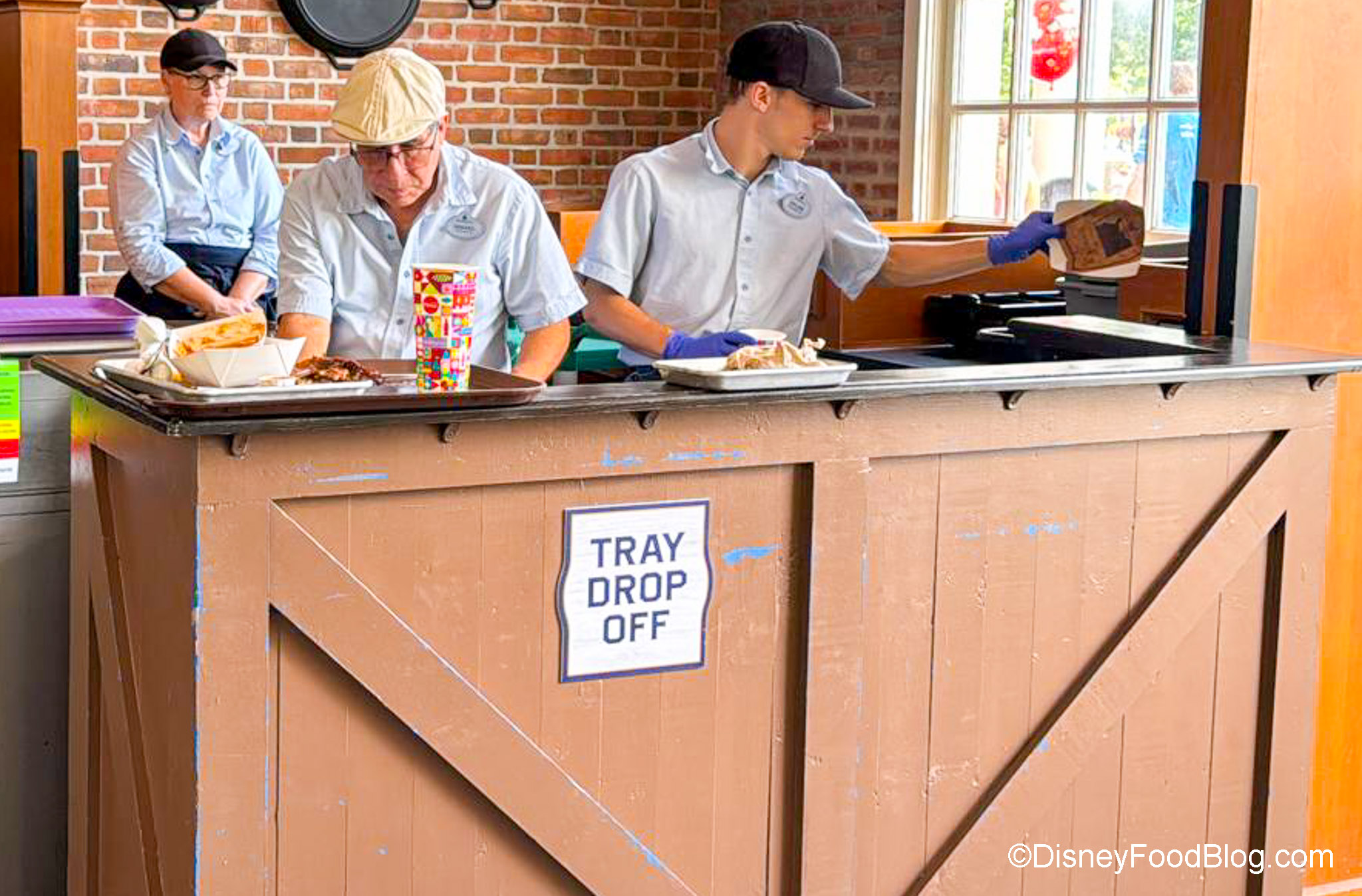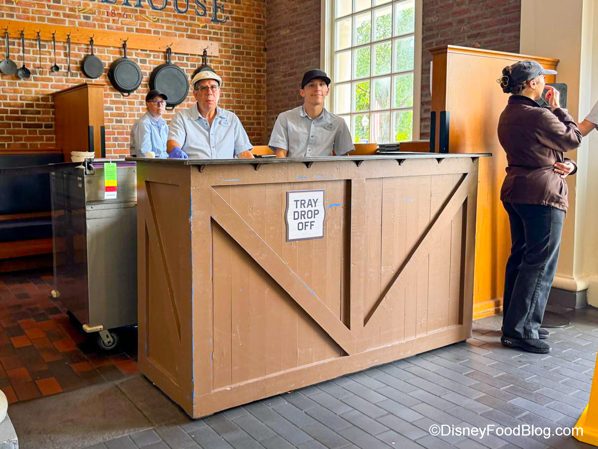 So, if you’re visiting a Disney World restaurant and notice that the self-return tray area is marked as closed, be sure to look for a station with Cast Members that should have a sign indicating that’s where you’ll drop off your trays once you’re done with your meal.