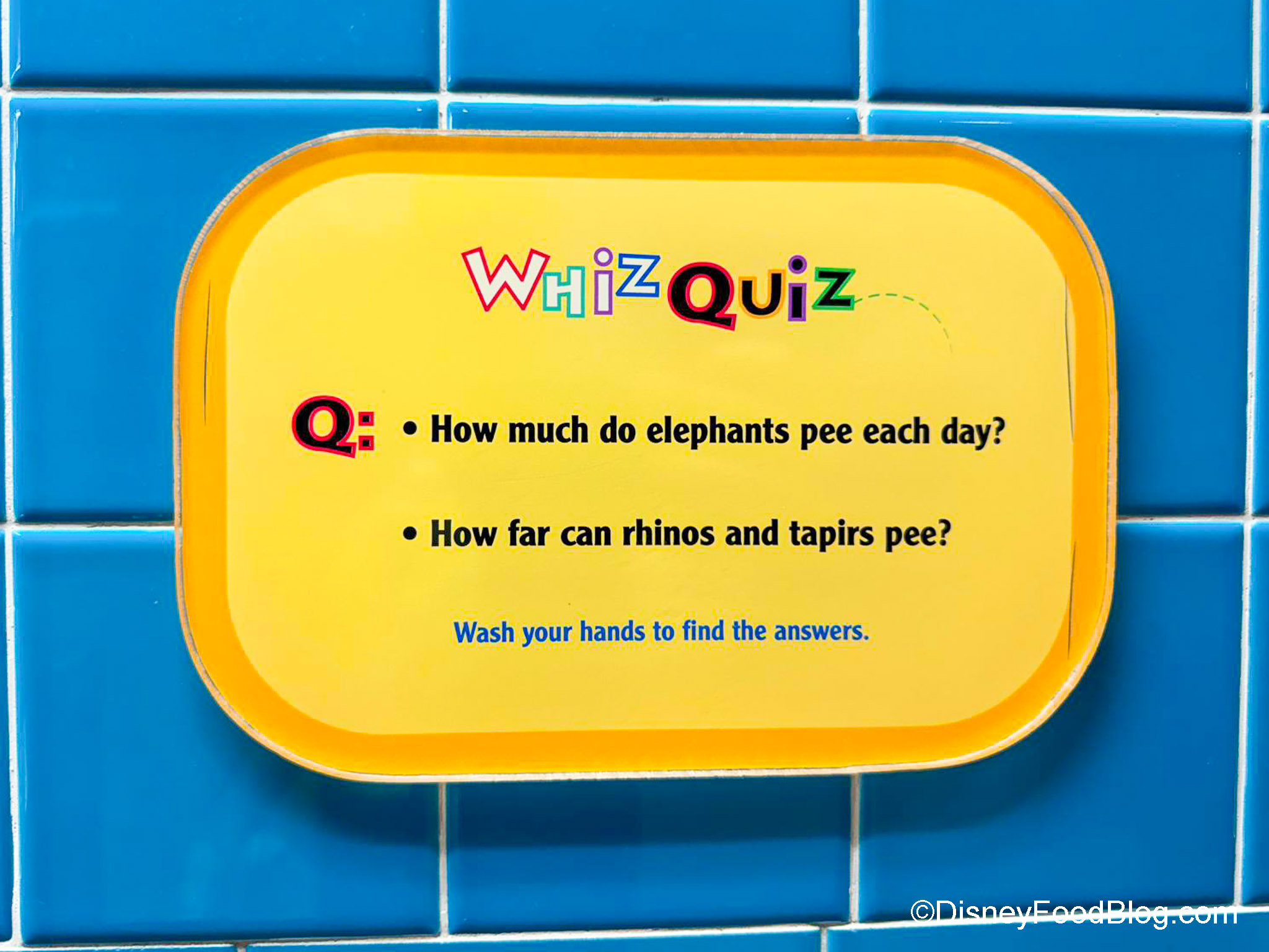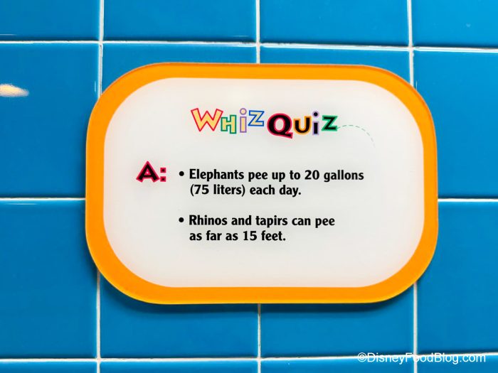 However, this is a bathroom experience with the added bonus of LEARNING. You’ll also find animal trivia questions on the walls.