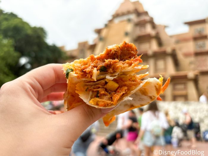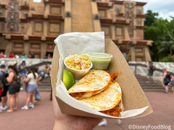 A new quesadilla has just debuted at EPCOT and you know we couldn’t pass up an opportunity to try it out!