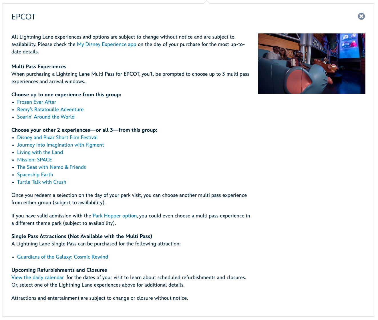 And over at Animal Kingdom, there will be no tiers at all — meaning you’re free to choose any of the attractions available with Lightning Lane Multi-Pass as part of your 3 selections. Avatar Flight of Passage will still be available via Lightning Lane Single Pass (A.K.A. Individual Lightning Lane).