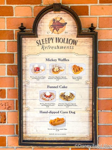 One of our favorite places to grab food in Magic Kingdom is Sleepy Hollow Refreshments in Liberty Square.