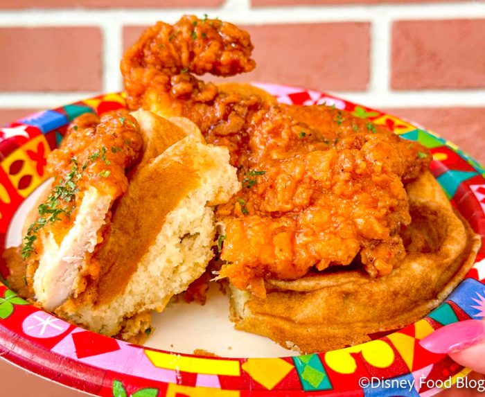 To break up all the sweetness, we grabbed the Mickey waffle with Sweet-and-Spicy Maple Chicken.