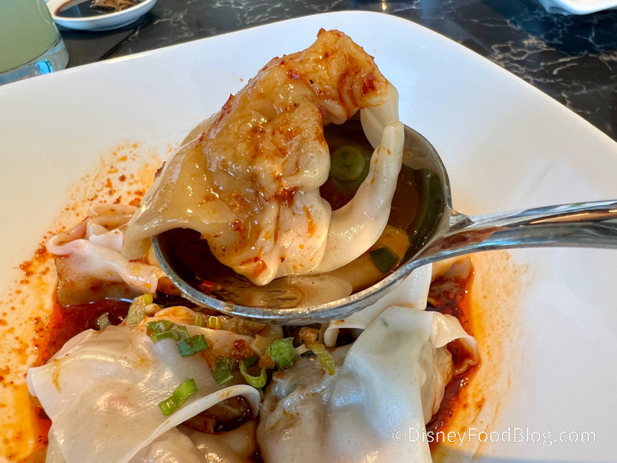 The Shrimp and Pork Spicy Wontons cost $17 and are made with freshly-peeled shrimp and Kurobuta pork served with the signature house spicy sauce and topped with garlic and green onion.
