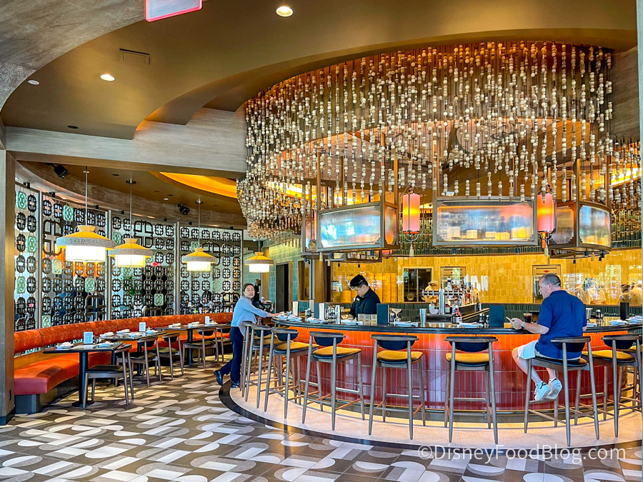 Once inside, you’ll immediately see a “suspended, beaded installation over the circular central bar” as well as “traditional-style Chinese pendants softly illuminating the space.”