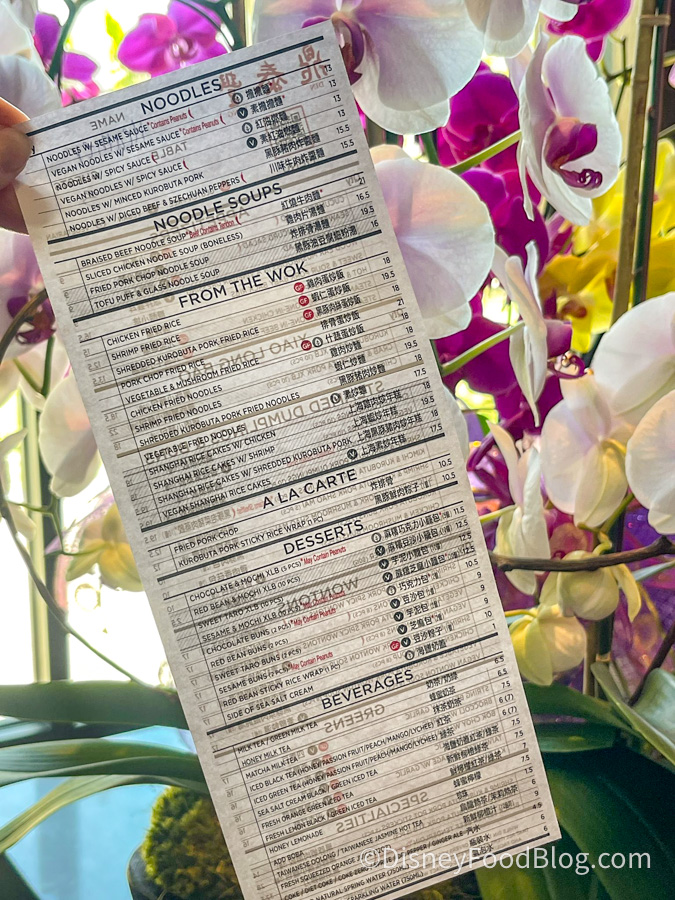 Din Tai Fung immediately sets itself apart from many other Disneyland and Downtown Disney restaurants with a more luxurious theming. This restaurant caters to both park-goers AND those looking for more upscale dining. According to Disney’s official description, the restaurant stands out with its “dramatic and contemporary take on a traditional Chinese pavilion rooftop structure.”