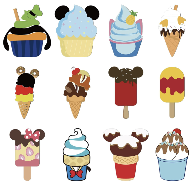 These were some of our favorite magnets. They’re the Disney character ice cream magnets, and they come in a pack of twelve different treats. Look at the adorable cone with Donald’s feet sticking out! And the Chip and Dale scoops! Ah!