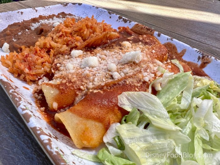 As you would expect, this Mexican Restaurant serves — you guessed it — Mexican cuisine! Disney bills the food at Rancho del Zocalo as “Authentic Mexican”, and while we slightly disagree, it still has a ton of classic Mexican fare you can find all over the United States in addition to seasonal agua frescas. This restaurant also serves bean and cheese burritos and chicken tacos for kids.