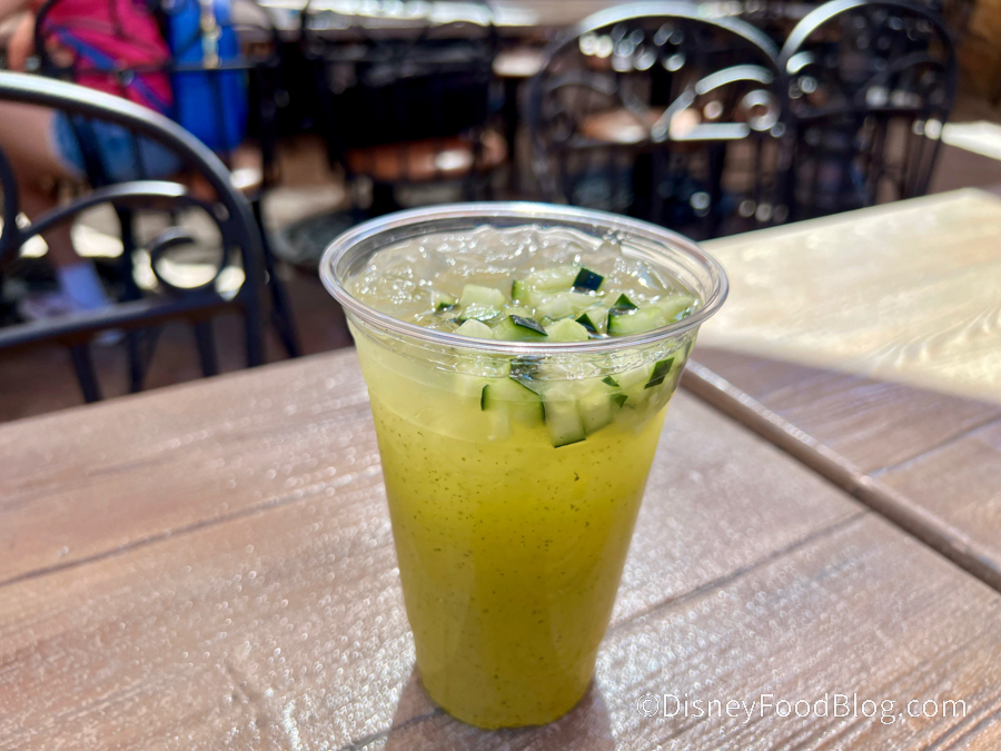 Finally, we have to talk about our drink — the seasonal Cucumber-mint Agua Fresca! This drink is made with cucumber agua with a hint of mint for $6.99.
