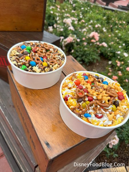 There’s a litany of new snacks available for Tiana’s Bayou Adventure. The two that caught our eye today are the NEW popcorn mixes available at the Magic Kingdom’s Main Street Confectionery for $15.99 each.
