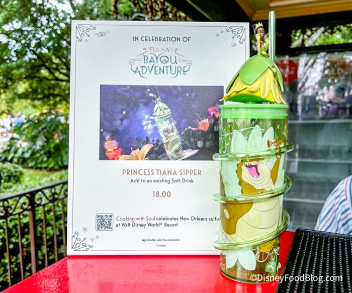On the way to the bayou, you might want to pick up a new souvenir sipper cup while you’re at it! Disney is selling a new Princess Tiana Sipper for $18, and a soft drink is included. Not gonna lie; we love that twisty straw.