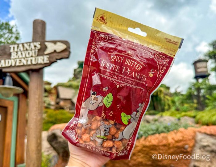 The peanuts were super crunchy and the sweetness was the first flavor we were hit with — followed by that buttery toffee. The subtle heat kicked in later and was definitely “Disney spicy,” meaning it won’t totally wreck you, but after eating a few handfuls, the heat definitely intensifies. These make a great not-too-sweet snack if you’re looking for something you can toss in your park bag and have later too.