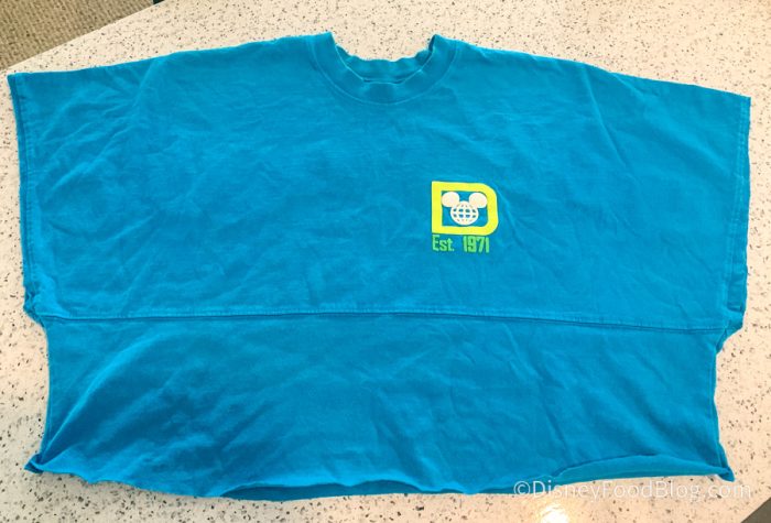 She trimmed off the long sleeves and about half of the bottom, which creates a loose, flowy t-shirt that’s much more practical for Florida weather. It works especially well if you have a Spirit Jersey that’s a size or two larger than what you actually normally wear.