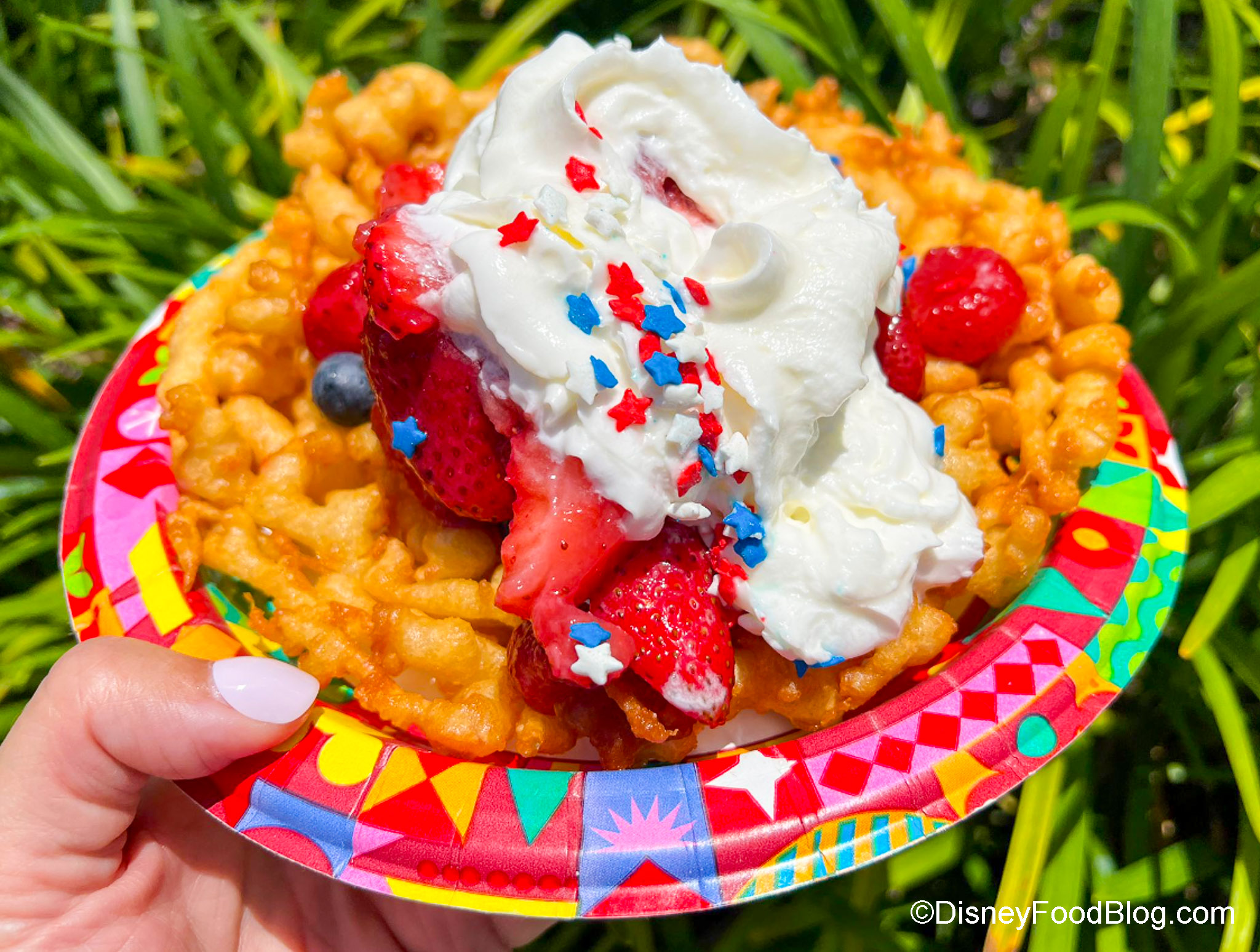 Obviously, a big problem in serving up a hot funnel cake topped with ice cream and whipped cream IN THE SUMMER in Florida is going to look like a disaster pretty quickly because of melting. That probably explains why most funnel cakes are usually topped with powdered sugar or syrups that don’t melt. Anyway, we LOVE funnel cake, we do. But this one…is NOT IT.
