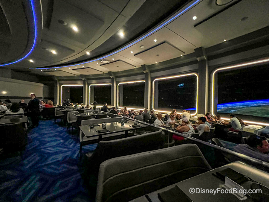 The retro theme in this dining space (and at the awesome bar) continues to delight guests. The hallway leading to the restaurant is covered in photos from the early days of Disney World — Disney history buffs will especially love this touch!