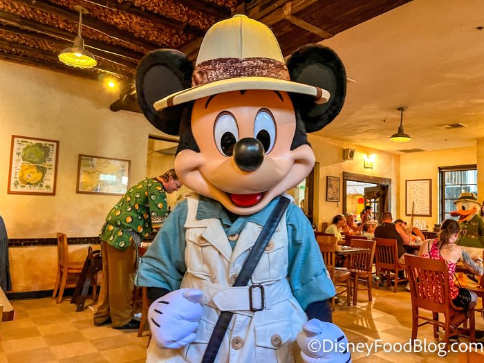 Animal Kingdom’s Tusker House is one of the best-kept secrets around when it comes to Disney dining and Character Meals. The food at this all-you-care-to-enjoy buffet is flavorful and interesting, and the characters are high-quality, featuring Donald, Mickey, and friends… all dressed in their Safari best!