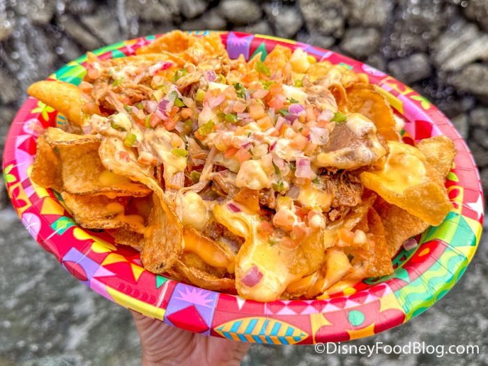 Polynesian favorites (like an Aloha Pork Sandwich and Pulled Pork Nachos), along with classic quick service eats like burgers, are served for lunch and dinner. Those Pulled Pork Nachos sound simple enough, right? WRONG! We’ve loved these beauts for YEARS. Topped with Cheese, Spicy Mayonnaise, Pico de Gallo, and Pineapple Salsa and cost $10.99! These are a loooooongtime Poly favorite for many — us included! They’re SO good. (Did we mention we like these nachos enough yet? No? OK, well we lurve these nachos!)