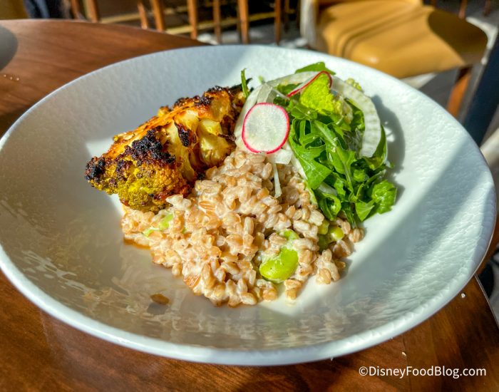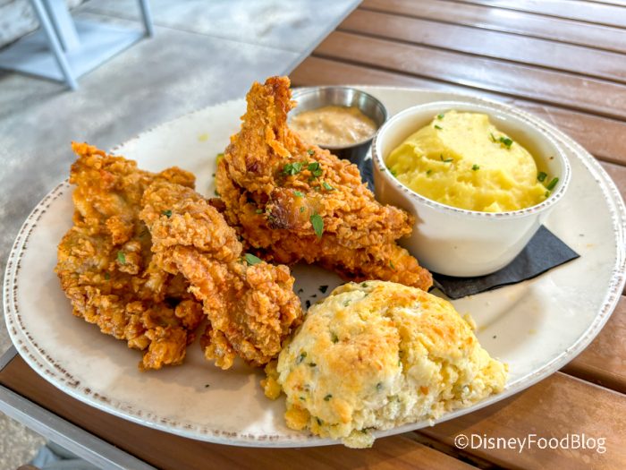 The name Homecomin’ refers to Chef Smith’s roots as a Florida native. (Fun fact: Chef Smith participated in the Disney World College Program as a culinary intern, and is a Florida State University alum!) Homcomin’ has a lot to offer, including a delicious Hummingbird Cake, the iconic Fried Chicken and Doughnuts, Art’s Famous Fried Chicken, and so much more (we see you, moonshine flights…). You really can’t go wrong on this menu, so if you see something you might like, give it a try!