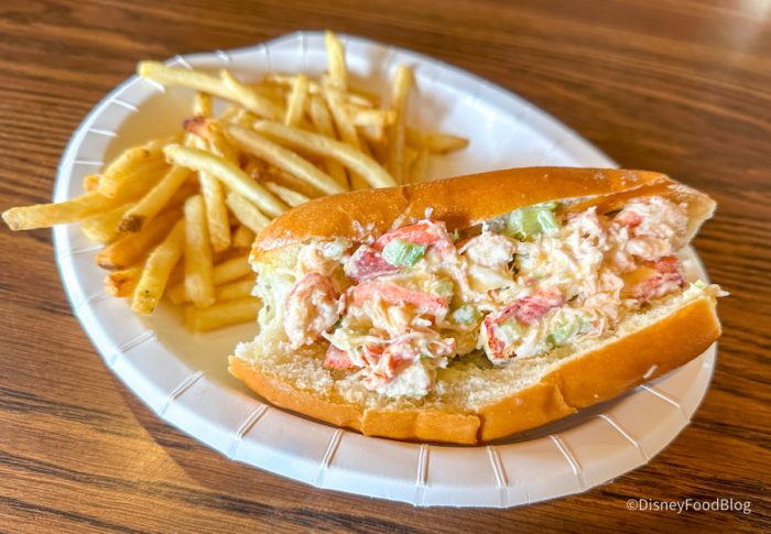 Enjoy some New England-inspired surf-and-turf at Columbia Harbour House in Magic Kingdom’s Liberty Square! In addition to Platters that feature options like fried fish and shrimp, the spot also boasts a fan-favorite Lobster Roll. Plus, you can also grab some delicious Hushpuppies! Landlubbers can opt for chicken strips (among other options). And those searching for lighter fare can enjoy items such as Maple-Mustard Glazed Salmon or a Shrimp Salad.