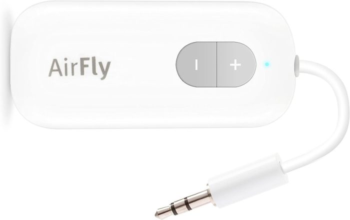 Finally, if you’ve ever wanted to use in-flight entertainment that requires corded headphones but simply want to use your own Bluetooth listening device, this travel item is for you!