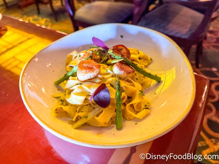 I ended up trying out two entrees, and for the first, I got the Pappardelle Scallop Pasta for $35, made with caramelized scallops, and served with asparagus and truffle sauce. The scallops were meaty and tender with a nice sear on the top, lightly sweetened from the caramelization. But that’s kind of where the good things about this entree ended.