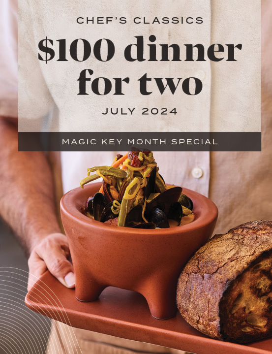 Known as the Magic Key Month Special, this deal is for Disneyland Magic Key Passholders ONLY through July 31st, 2024, and will allow Magic Key Passholders to experience the signature flavors of Chef Gaytán with an exclusive dinner menu.
