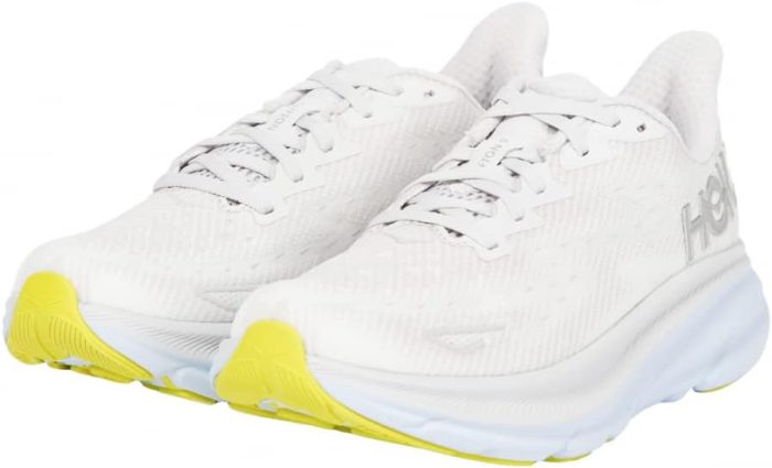 According to the description of the HOKA ONE ONE Womens Clifton 9 Textile Nimbus Cloud Ice Water Trainers, the breathable texture and material allows for seamless synthetic overlays and abrasion free wear. There’s also a removable, foam padded insole that can be used to provide more support for those who have arches in their foot, or it can be taken out for those who are more flat footed. This right here adds value to the shoe, as many people need to buy insoles separately to make their shoes as comfortable as they need to be.