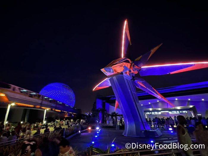 If you’re struggling to find a place to sit down and eat yo’ corn dog nugs, you can always carry your snackage over to the nearby Tomorrowland Terrace tables — since this quick service restaurant is currently closed during the day, but still offers up a whole lotta seating.