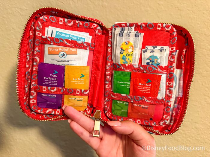 We like this first aid kit and bring it to the parks with us. It is especially a lifesaver on long park days. It has 130 pieces and includes tweezers, tape, bandages, wipes, and tons of other helpful things!