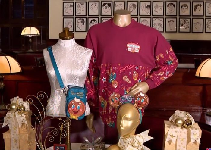 So Jollywood Nights has its own little mascot, a cute little gingerbread man named Ollie, who’s got some serious old Hollywood vibes. So you’ll see Ollie on a lot of the merchandise. Disney already offered us a sneak peek at the Jollywood Nights Ears you’ll be able to pick up at the party — and you’ll find that they’re ALL about Ollie.