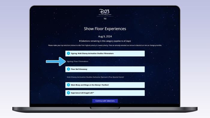 Now, let’s get into the nitty-gritty of how to actually make your selections through the Reservation RSP. Beginning Monday, July 15th at 12PM PT you will be able to navigate to the Reservation RSP via the D23 website. Once you have navigated to the Reservation RSP you will need to sign in to your D23 Member account. After you have logged in, you will see a reservation screen where you will make your selections.