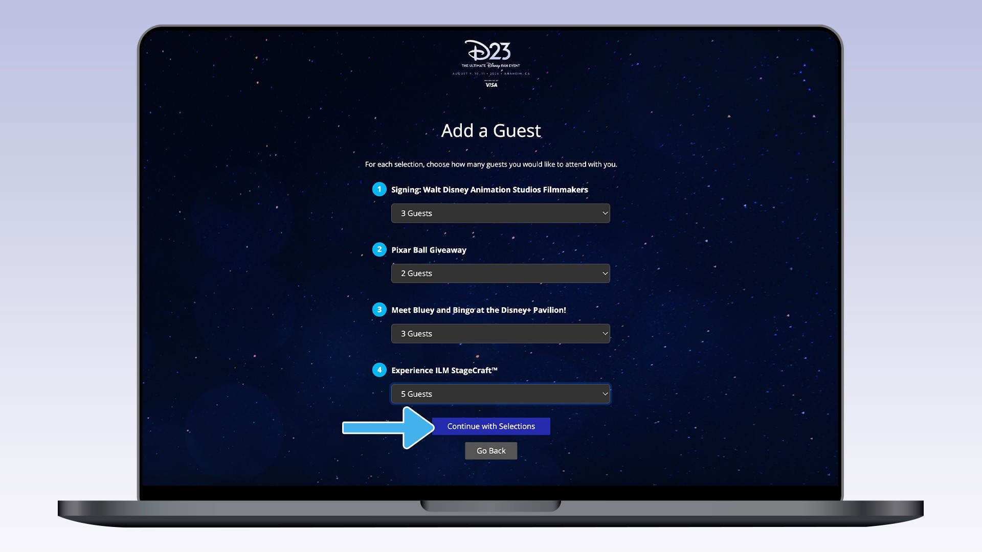 If you are happy with your selections, you can click “Submit” and you are all set! If you are a bit undecisive, no worries! You can modify your selections as much as you want until 12PM PT on July 19th. Children under 18 years old will not be able to make reservations, but they can accompany adults with reservations as one of their additional guests.