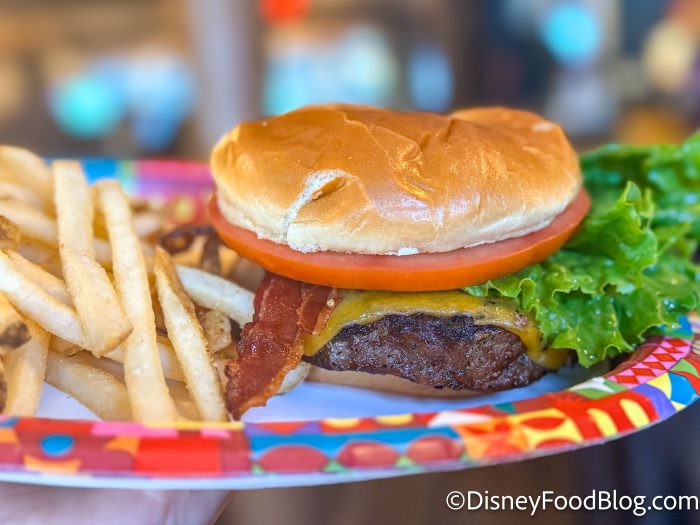 During our visit, we decided to try out two different entrees from the menu! First up was the Barbecued Pulled Pork which was served on a fresh brioche bun for $10.79. Disney says it’s made with 10-hour smoked pulled pork and barbecue sauce topped with creamy slaw and served with french fries.