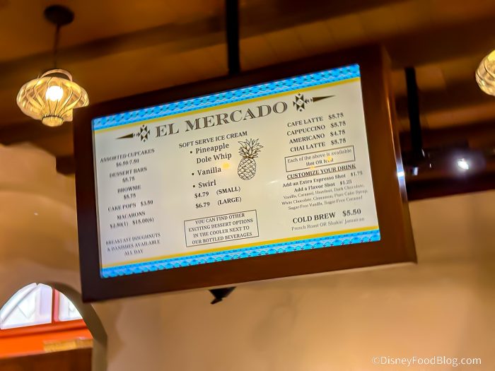 At El Mercado de Coronado — AKA: the quick service location inside Disney’s Coronado Springs Resort — you can order from a small selection of soft serve flavors. And one of those flavors just so happens to be the famous Pineapple Dole Whip!