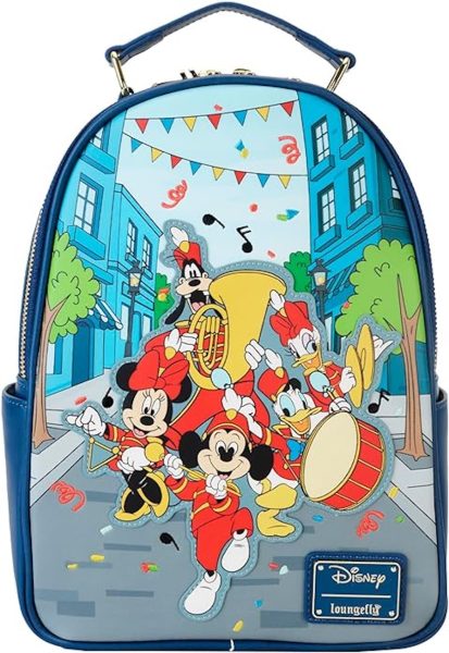 This double-strap shoulder bag features Mickey, Minnie, Donald, Goofy, and Daisy in full marching band regalia.