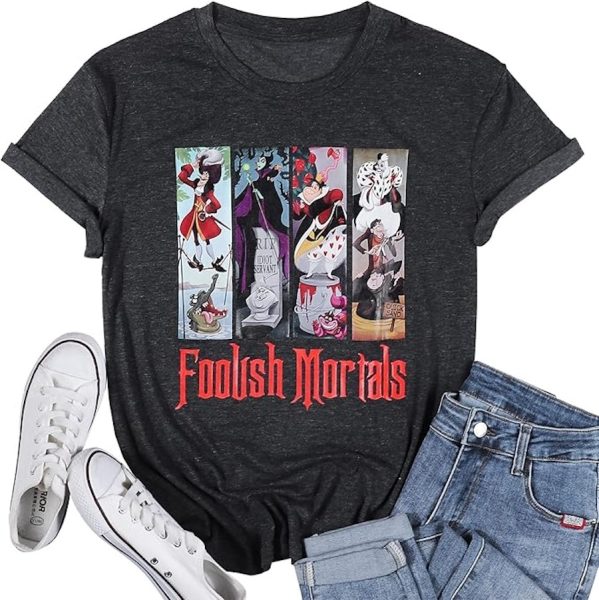 Featuring Captain Hook, Malificent, the Queen of Hearts, and Cruella doing their best impressions of the Haunted Mansion’s stretching room portraits, this tee is perfect for major fans of spooky Disney villains.