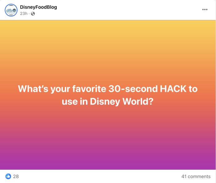 We reached out to our followers on Facebook to ask: “What’s your favorite 30-second HACK to use in Disney World?” We had quite a few people leave their opinions in the comments!
