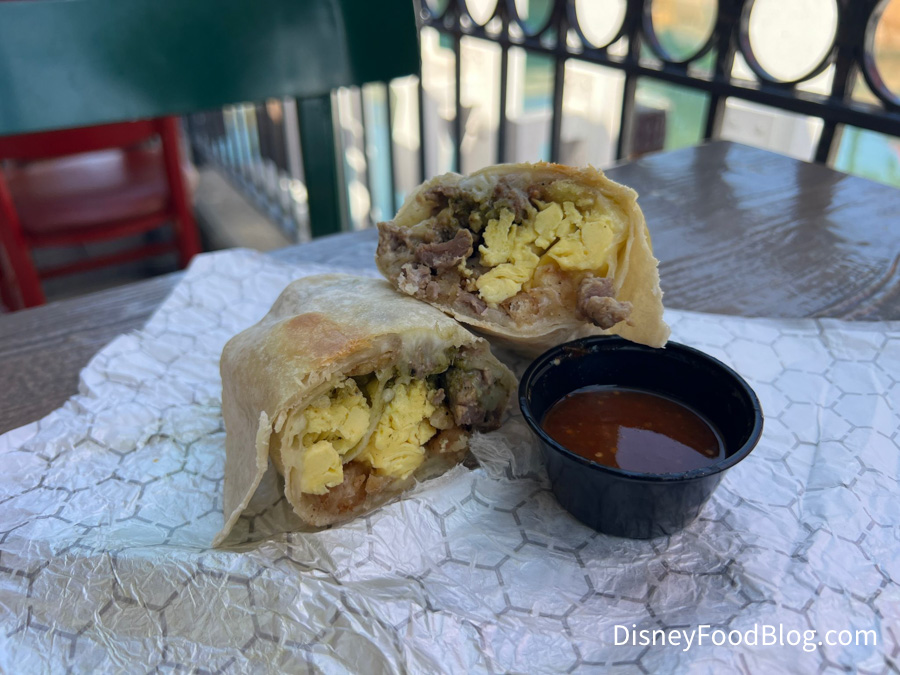 That brings us back to the steak and egg breakfast burrito. Not only is it delicious and filling, it’s also portable, meaning that it can provide a full meal on-the-go and help negate the idea that the only way to have a good and filling breakfast at a Disney park is to “waste valuable theme park time.”
