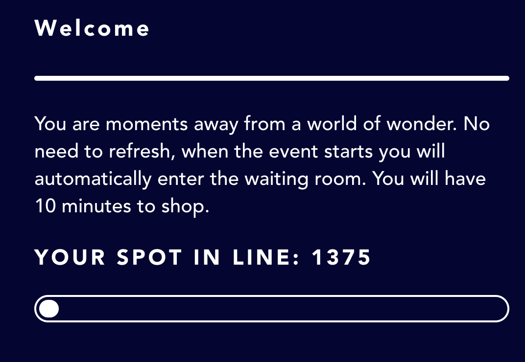 We’ll warn you now that when you go to The Disney Store website, you’ll have to enter a virtual queue to shop! Here’s the message you may see.